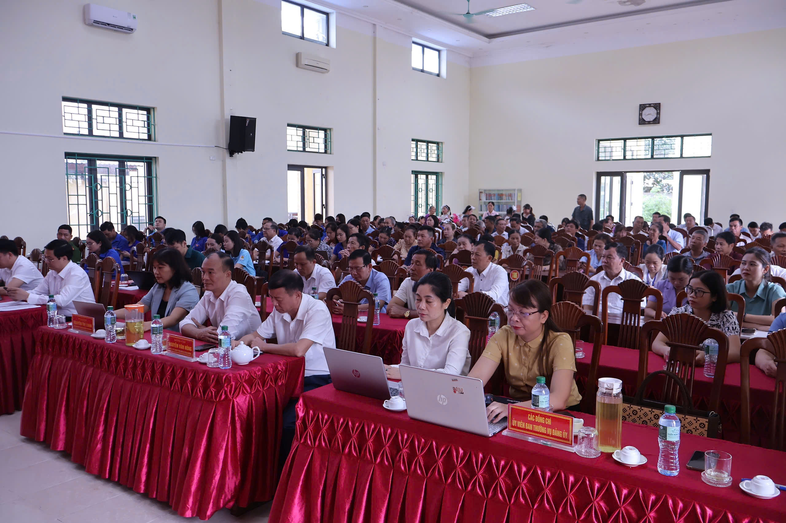Các đồng chí lãnh đạo Đảng ủy-HĐND-UBND Xã cùng đại diện các ban, ngành, đoàn thể, bí thư chi bộ, trưởng xóm và các cá nhân, tập thể tiêu biểu được biểu dương khen thưởng.