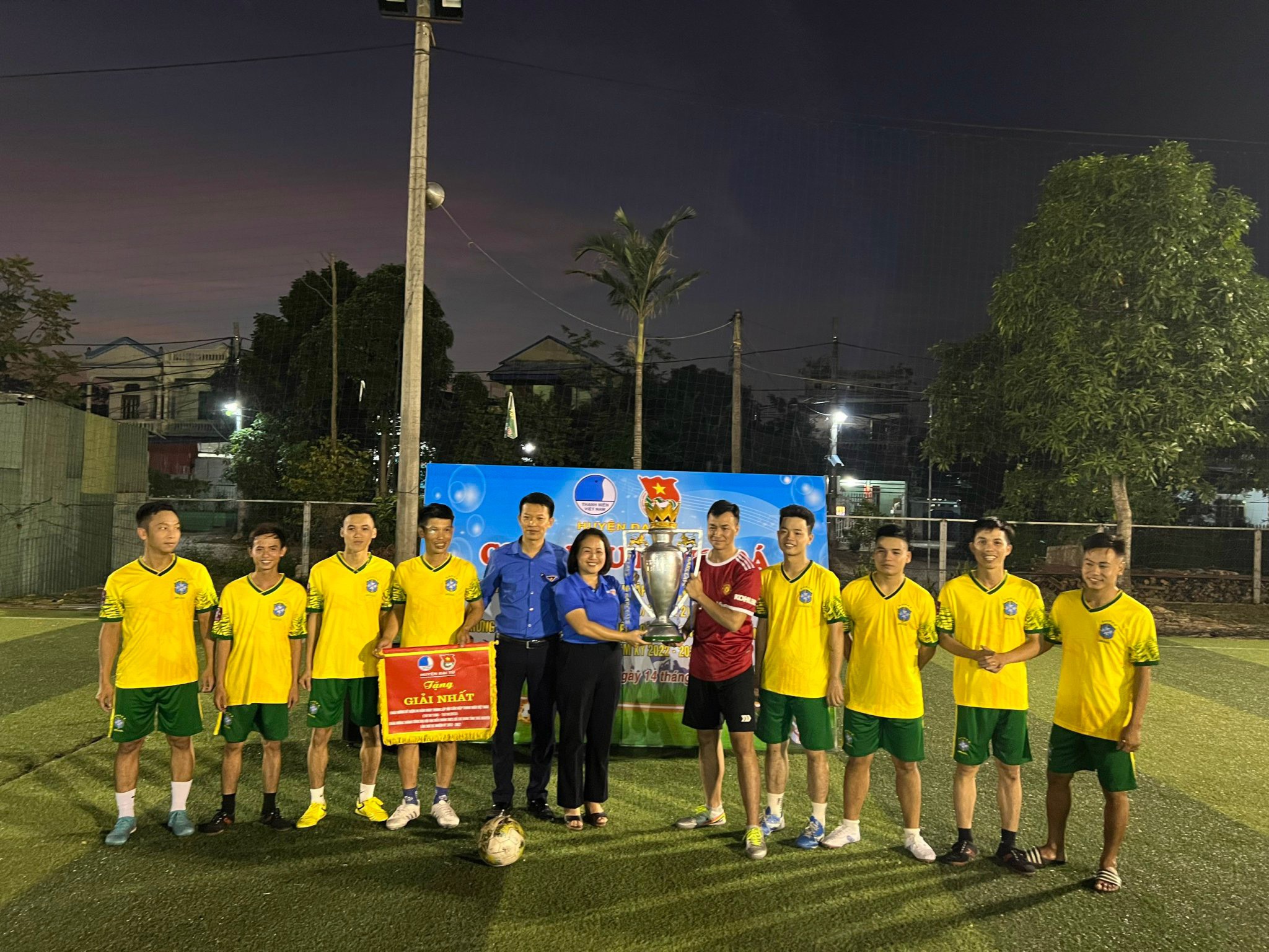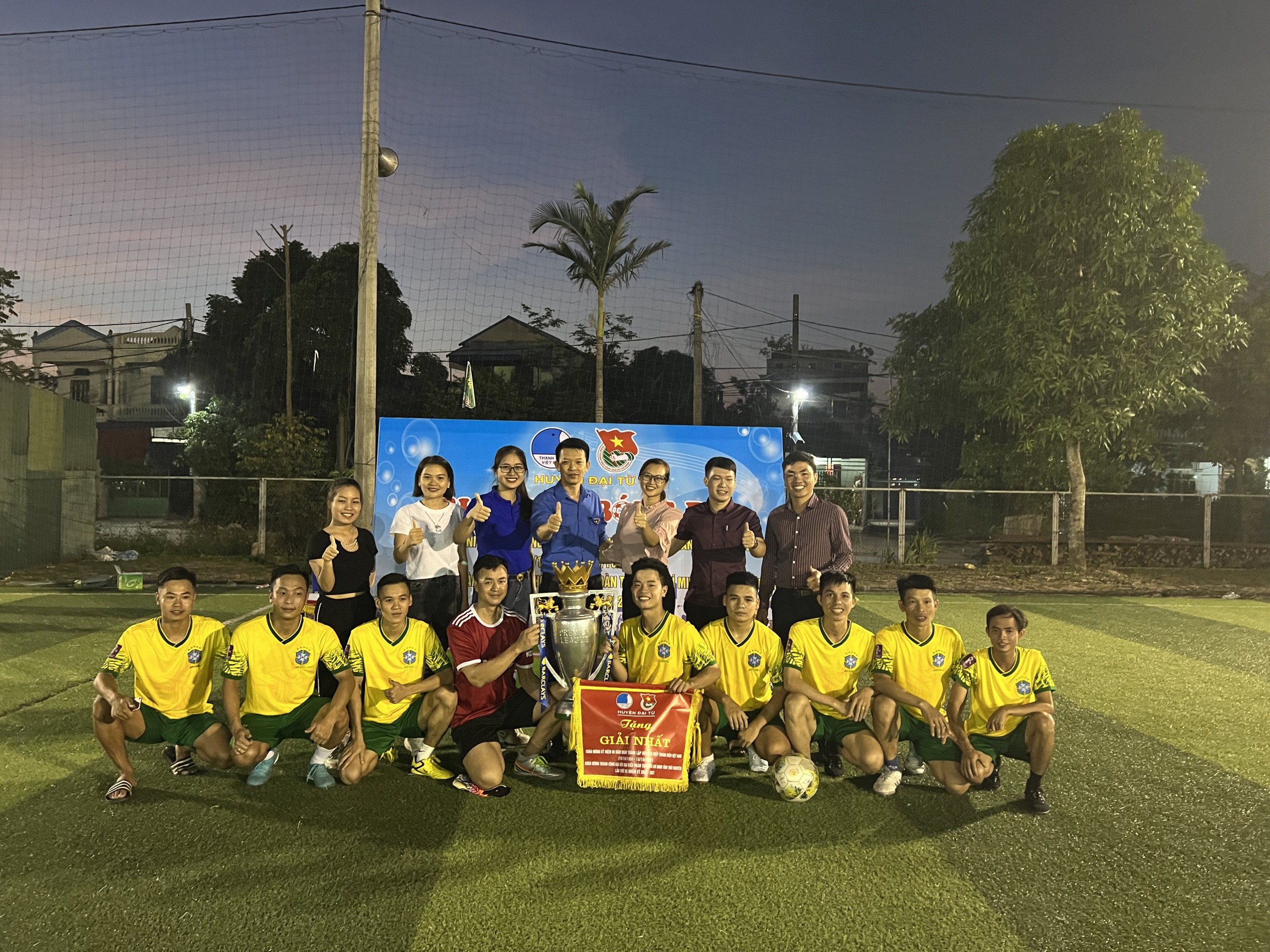 Chúc mừng đội bóng cụm thi đua trung tâm đã giành giải nhất tại chương trình giao lưu. An Khánh tự hào với sự góp mặt của 1 cầu thủ và 1 thủ môn.